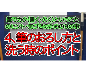 4つめは、新品の筆のおろし方と洗う時のポイントについて、また普段使用する時に気をつけた方が良いことを解説してみました。