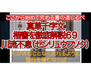 真草千字文(楷書)徹底解説69川流不息(センリュウフソク)川の流れがやまないように徳を積むこと、4字とも基本となる字、良い練習になります
