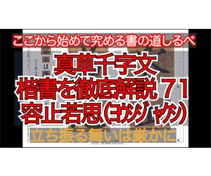 真草千字文(楷書)徹底解説 71容止若思(ヨウシジャクシ立ち振舞いは厳かに「ウ冠」や「田」は一見の価値ありです