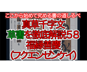 真草千字文(草書)徹底解説58福縁善慶(フクエンゼンケイ)とくに「慶」はくずし方は覚えておくと良いです